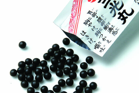 三光丸の表面は薬用炭でコーティングされており、成分を守りながら少しずつ溶け出すようになっています。