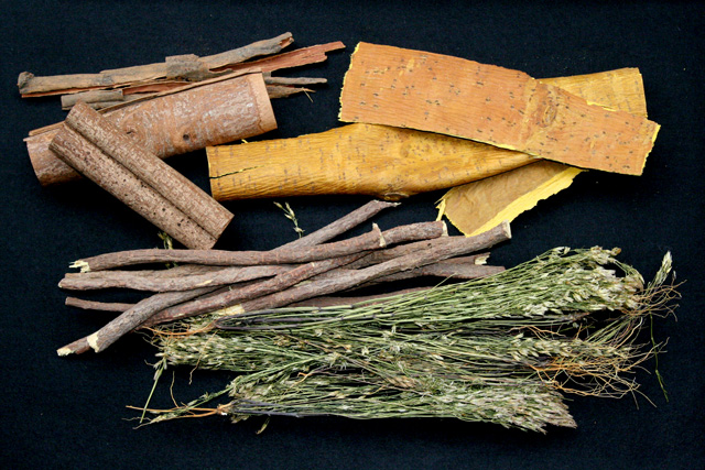 樹齢15年以上のキハダの樹皮を使い、外側の層を取り除いた内皮部分のみを乾燥させたものがオウバクです。この木の皮をむく作業はすべて手作業で行われ、高度な技術が求められます。